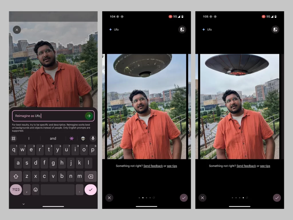 Cuanto más descriptivo seas, mejores serán los resultados. Sin embargo, Google afirma que funciona mejor con fondos y objetos en lugar de personas: hay barandillas para que no alteres la apariencia de alguien.