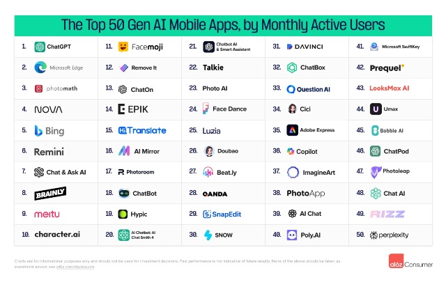 Pero en medio de la incesante avalancha de lanzamientos de productos, anuncios de inversiones y características promocionadas, vale la pena preguntarse: ¿Cuáles de estas aplicaciones de IA de la generación de consumidores están usando realmente? ¿Qué comportamientos y categorías están ganando terreno entre los consumidores? ¿Y a qué aplicaciones de IA están volviendo las personas, en lugar de probarlas y abandonarlas?