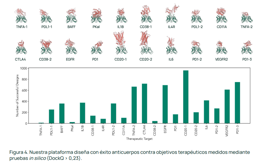ProGen3 no es solo un avance académico; tiene aplicaciones prácticas inmediatas. La plataforma permite el diseño de anticuerpos específicos, denominados OpenAntibodies, para 20 objetivos terapéuticos que afectan a 7 millones de pacientes y representan U$S 660 mil millones en ventas históricas.