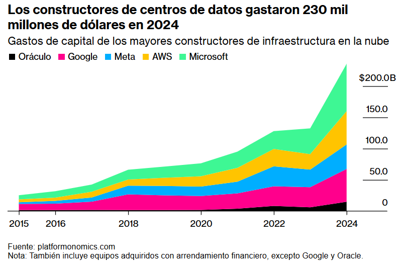 A pesar del entusiasmo, el contexto no acompaña. Amazon y Microsoft, líderes en infraestructura cloud, están ralentizando sus planes de expansión de data centers. Amazon Web Services registró su crecimiento de ventas más bajo en un año, con un 17%, lo que alimenta temores de sobrecapacidad en el sector.