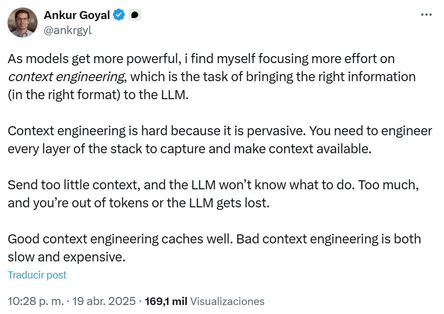 “+1 para «ingeniería del contexto » sobre “ingeniería de prompt «.”